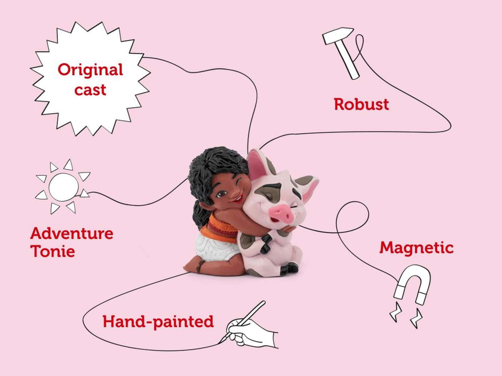 A mysterious new threat puts her home in danger, so Disney’s Moana sets sail with Maui to uncover an ancient secret. Little listeners just pop this Tonie on their Toniebox and get ready for mischievous creatures, wild waves and plenty of Maui’s ‘legendary’ heroics! Featuring three songs from the film.