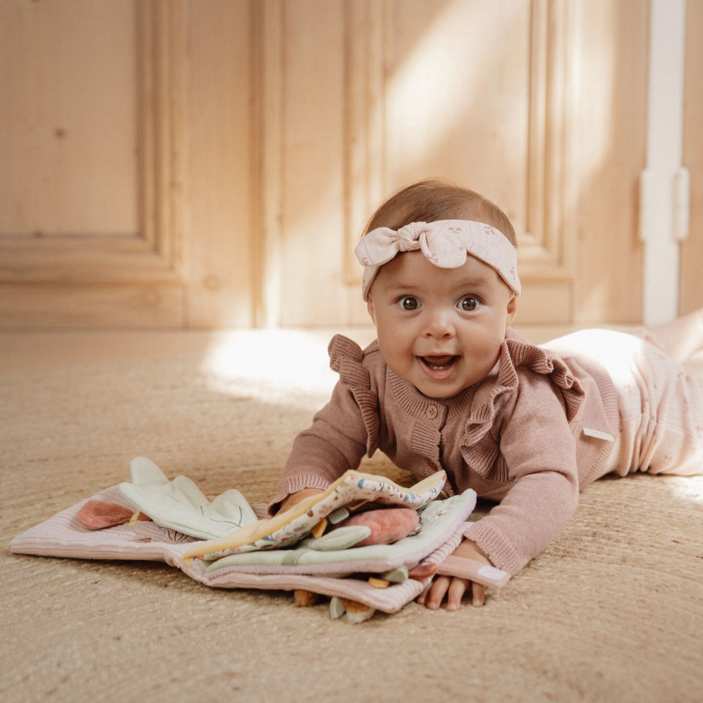 Say hello to adventure with this vibrant Fairy Garden Soft Activity Book from Little Dutch! Join the adorable little deer as it takes you on a journey through a magical garden filled with delightful surprises. With a variety of textures to explore, a mirror, a rattle, and hidden toys to discover, this soft book offers endless sensory fun. The colorful labels are perfect for little hands to touch and explore, promoting tactile development. A wonderful way to stimulate the senses and support the development of hand-eye coordination. Let the adventure begin!